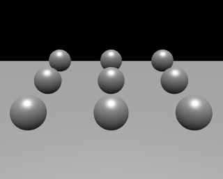 The results of an Hemi Light for the 9 sphere set up are shown in Figure 7 the superior softness of the Hemi light in comparison to the sun light is evident.