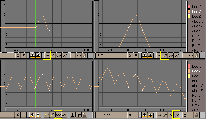 In addition to the standard channels, you have the delta options, such as dLocX. These channels allow you to assign a relative change. This option is primarily used to control multiple objects with the same IPO. In addition, it is possible to work in animation 'layers'. You can achieve subtle effects this way without having to draw complicated curves.