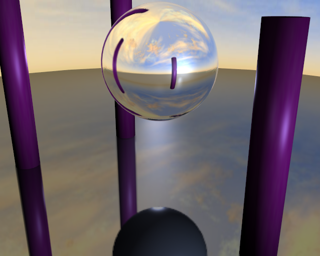 ![]() | The EnvMap of the Plane needs to be computed only once at the beginning if nothing else moves! Hence it can be static. The Envmap on the sphere is another matter, since it won't reflect the changes in the reflections in the water unless it is computed at each frame of the animation. Hence it should be of type Anim. |