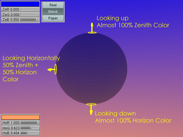 Sky Texture - A Sky Image texture must be present, possibly an AngMap or a SphereMap. It behaves as Sky Color but the ray color depends on the color of the Sky texture pixel hit.